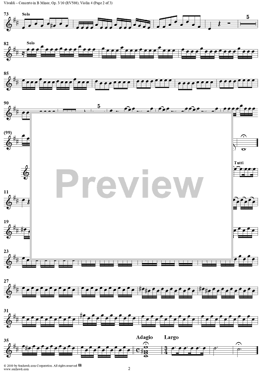 Digital Sheet Music for Concerto in B Minor, Op. 3, No. 10, RV580 from "L'estro Armonico" - Violin 4 by Antonio Vivaldi scored for String Orchestra; id:262362