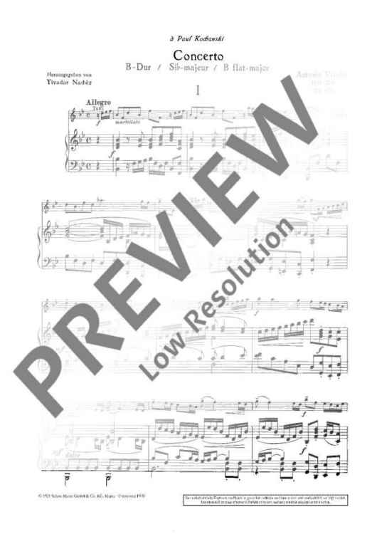 "Concerto in Bb Major - Piano Score and Solo Part" Sheet Music by Antonio Vivaldi