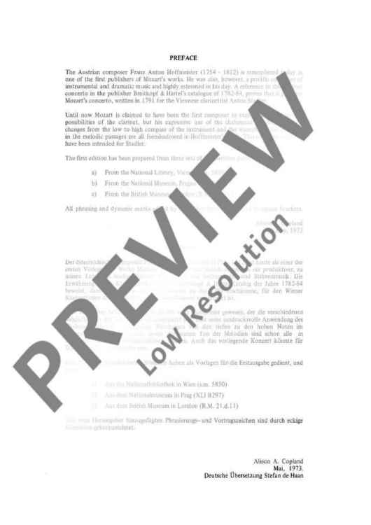 "Concerto in Bb - Piano Score and Solo Part" Sheet Music by Franz Anton Hoffmeister