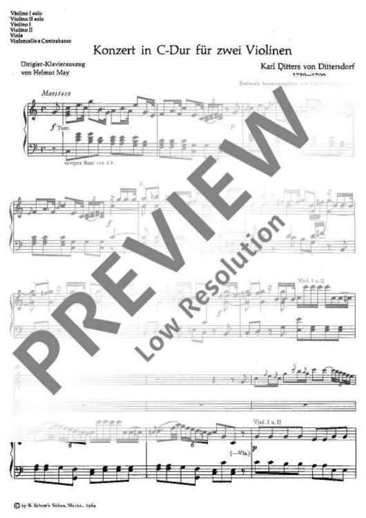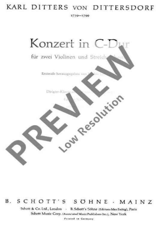 Digital Sheet Music for Concerto In C Major - Conductor Reduction by Karl Ditters von Dittersdorf scored for 2 Violins and String Orchestra; id:483048