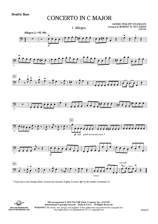 Digital Sheet Music for Concerto in C Major - Double Bass by Georg Philipp Telemann, Robert D. McCashin scored for String Orchestra; id:431984