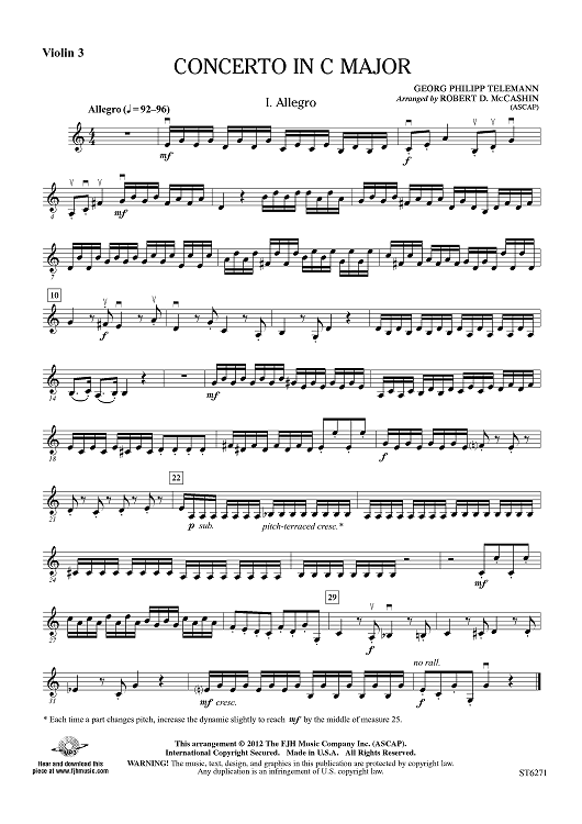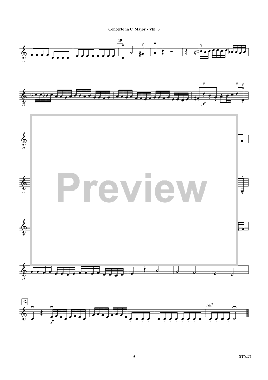Digital Sheet Music for Concerto in C Major - Violin 3 (Viola T.C.) by Georg Philipp Telemann, Robert D. McCashin scored for String Orchestra; id:431981