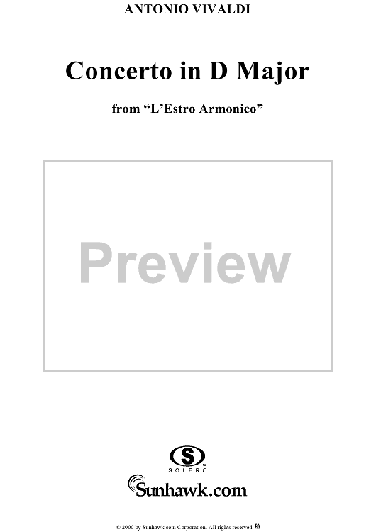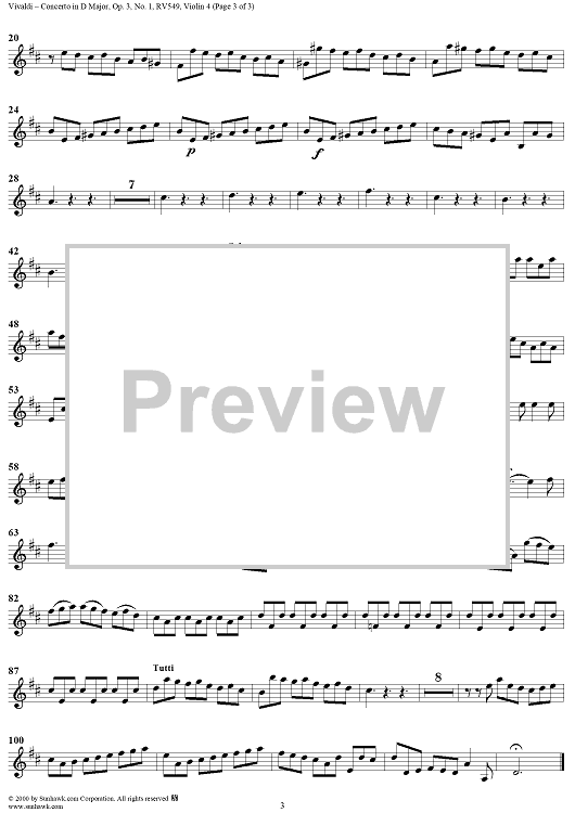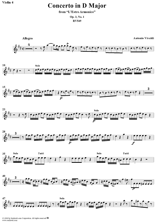 "Concerto in D Major, from "L'Estro Armonico", Op. 3, No. 1 (RV549) - Violin 4" Sheet Music by Antonio Vivaldi
