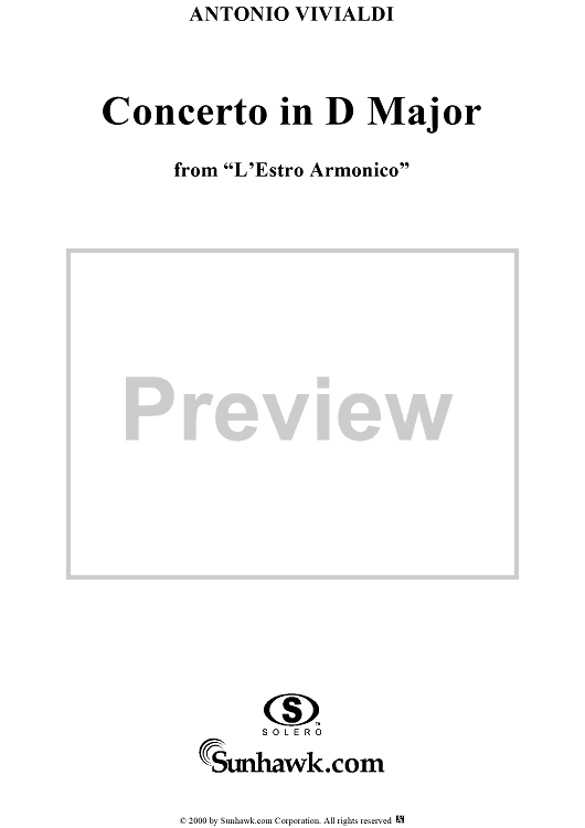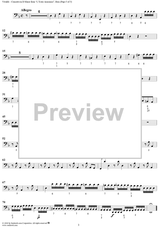 "Concerto in D Minor - Bass" Sheet Music by Antonio Vivaldi