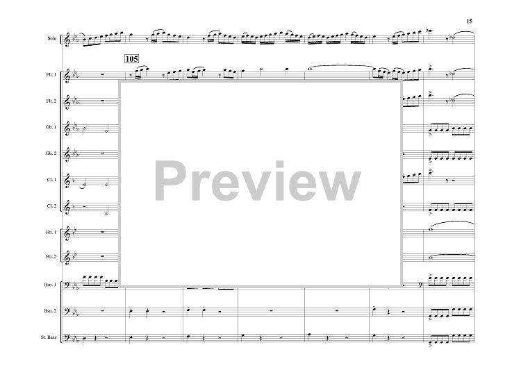 Digital Sheet Music for Concerto in E-flat - Score by Franz Joseph Haydn, Lewis J. Buckley scored for Trumpet/Double Wind Quintet/Bass; id:320273
