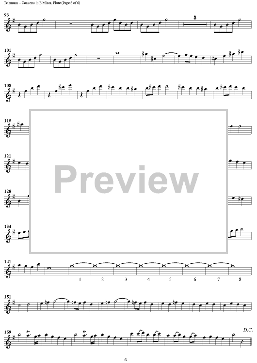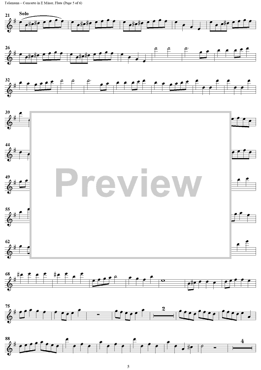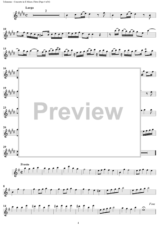 Digital Sheet Music for Concerto in E Minor for Recorder and Flute by Georg Philipp Telemann scored for Flute Solo; id:458074
