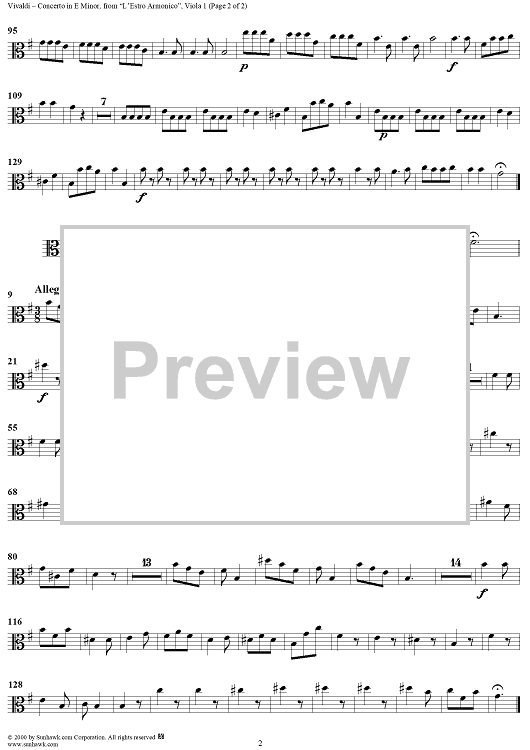 Digital Sheet Music for Concerto in E Minor - from "L'Estro Armonico" - Op. 3/4 (RV550) - Viola 1 by Antonio Vivaldi scored for String Orchestra; id:265101