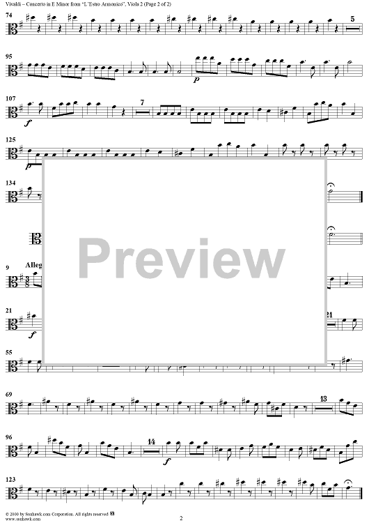 Digital Sheet Music for Concerto in E Minor - from "L'Estro Armonico" - Op. 3/4 (RV550) - Viola 2 by Antonio Vivaldi scored for String Orchestra; id:265102