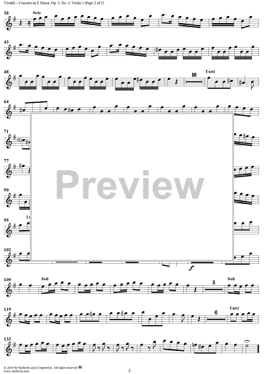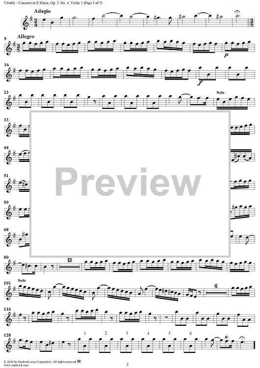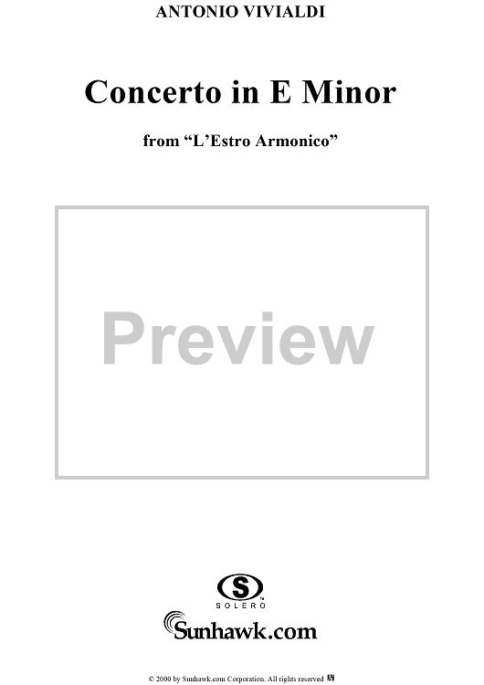 Digital Sheet Music for Concerto in E Minor - from "L'Estro Armonico" - Op. 3/4 (RV550) - Violin 1 by Antonio Vivaldi scored for String Orchestra; id:265094