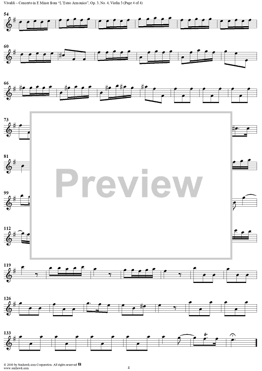 Digital Sheet Music for Concerto in E Minor - from "L'Estro Armonico" - Op. 3/4 (RV550) - Violin 3 by Antonio Vivaldi scored for String Orchestra; id:265099