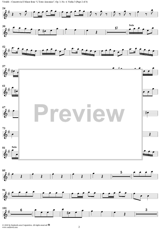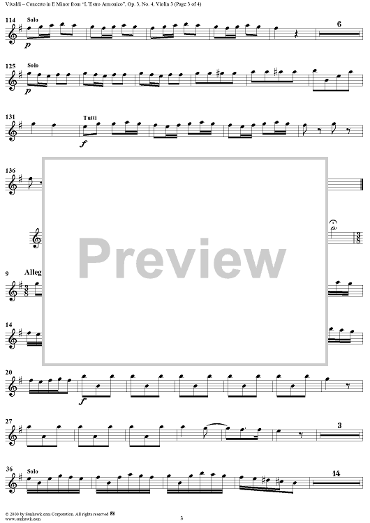 "Concerto in E Minor - from "L'Estro Armonico" - Op. 3/4 (RV550) - Violin 3" Sheet Music by Antonio Vivaldi