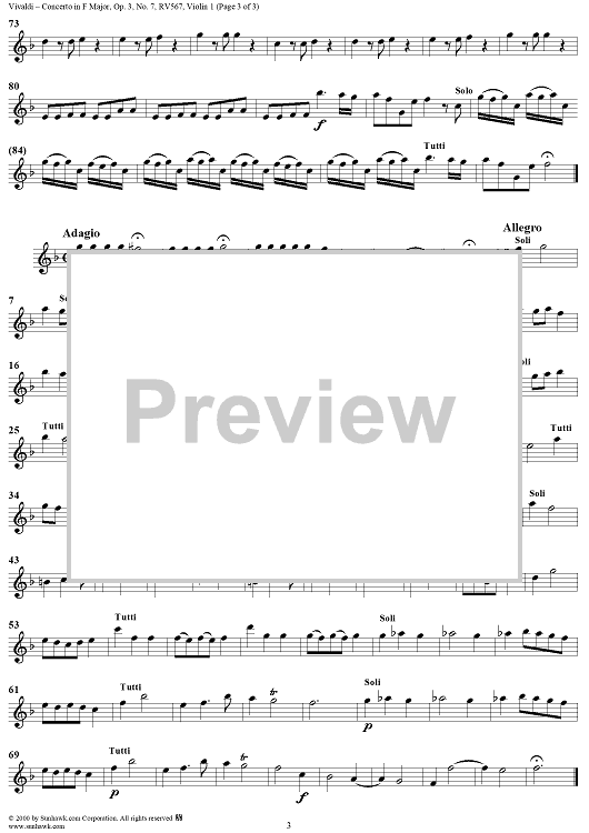 Digital Sheet Music for Concerto in F Major - from "L'Estro Armonico" - Op. 3/7 (RV567) - Violin 1 by Antonio Vivaldi scored for String Orchestra; id:265129