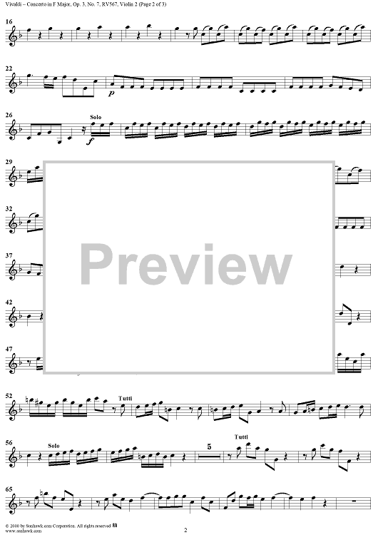 "Concerto in F Major - from "L'Estro Armonico" - Op. 3/7 (RV567) - Violin 2" Sheet Music by Antonio Vivaldi