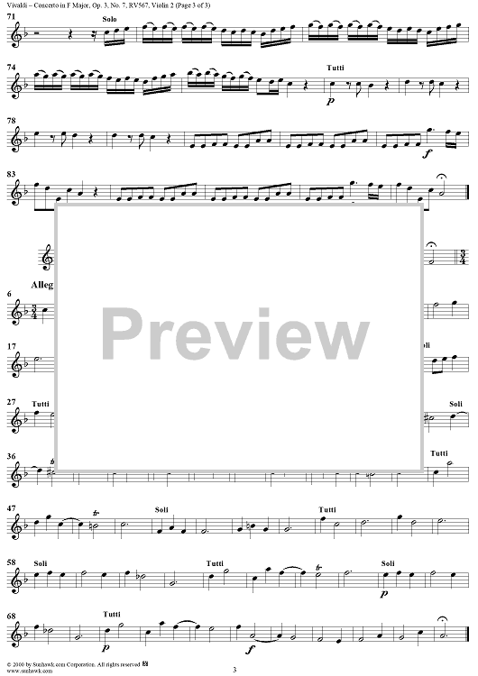 Digital Sheet Music for Concerto in F Major - from "L'Estro Armonico" - Op. 3/7 (RV567) - Violin 2 by Antonio Vivaldi scored for String Orchestra; id:265130
