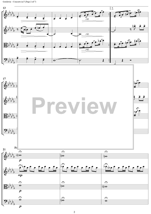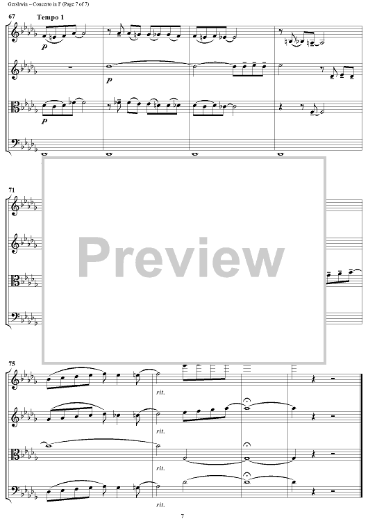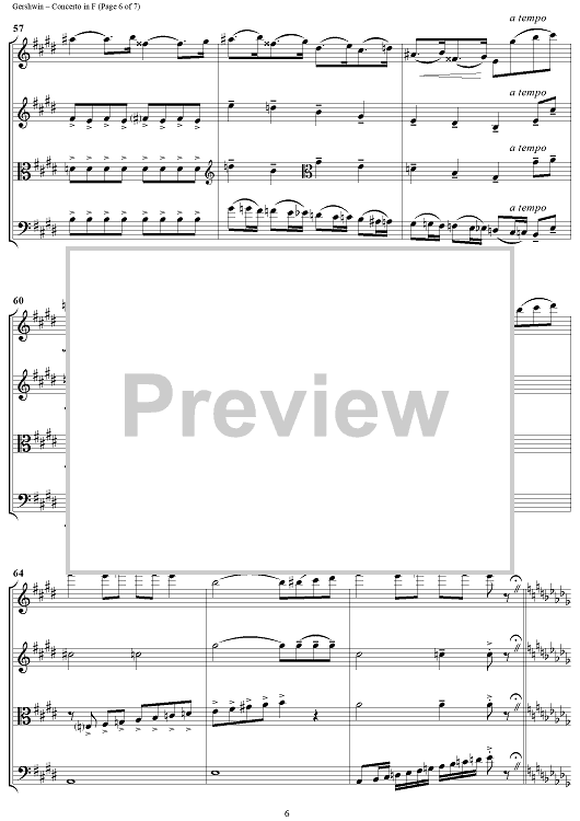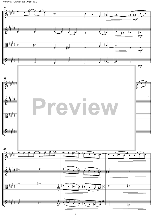 Digital Sheet Music for Concerto in F - Score by George Gershwin, Jeff Sultano scored for String Quartet; id:316518