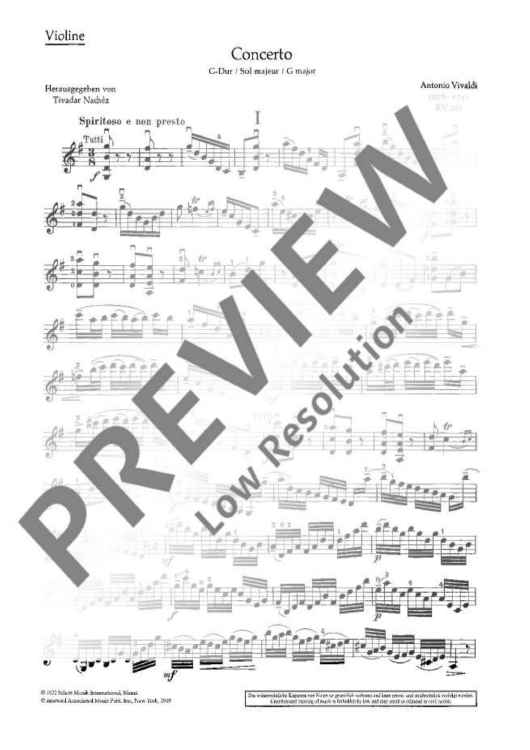 Digital Sheet Music for Concerto in G Major - Piano Score and Solo Part by Antonio Vivaldi scored for Violin, Strings And Organ; id:472331