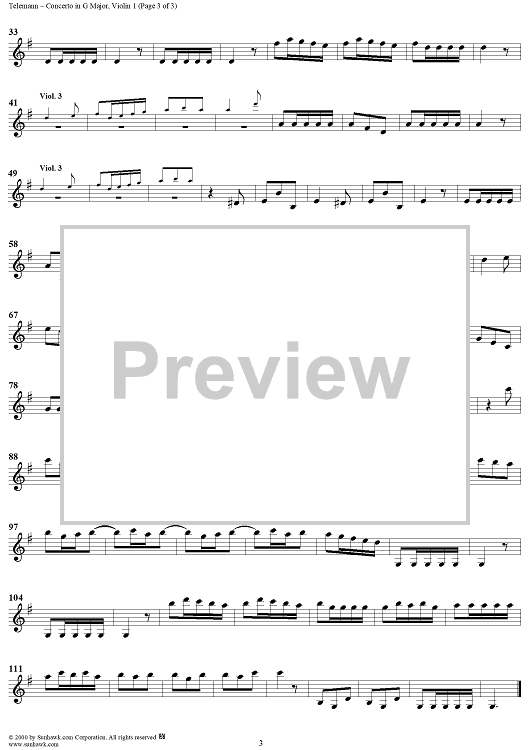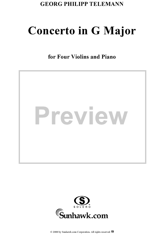 Digital Sheet Music for Concerto in G Major - Violin 1 by Georg Philipp Telemann scored for Violin Quartet; id:220581