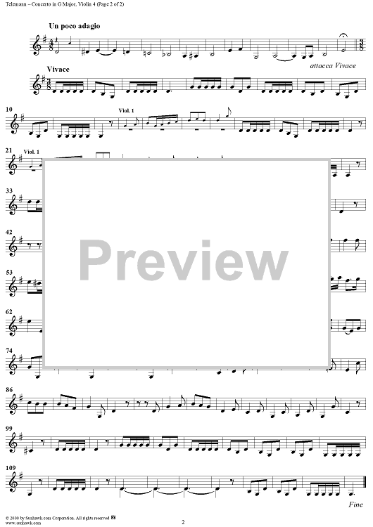Digital Sheet Music for Concerto in G Major - Violin 4 by Georg Philipp Telemann scored for Violin Quartet; id:220585