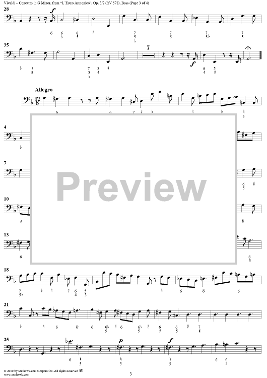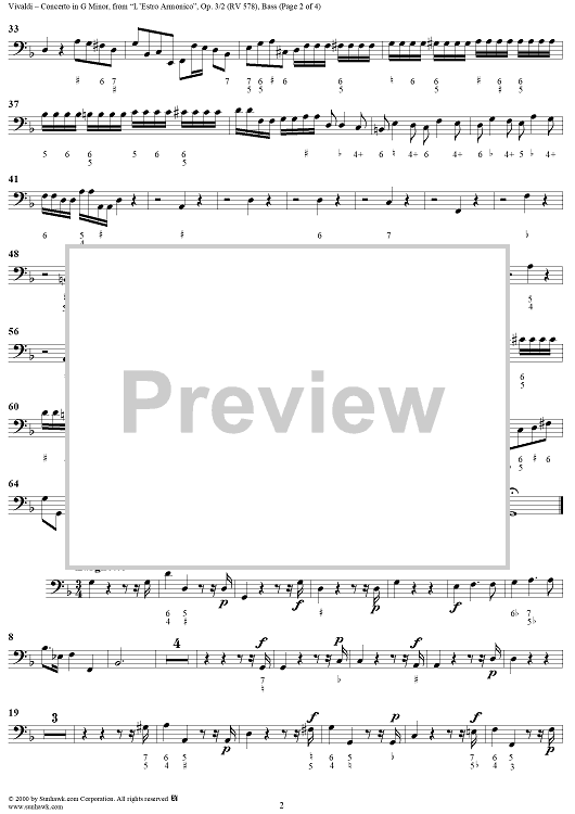 "Concerto in G Minor - from "L'Estro Armonico" - Op. 3/2 (RV578) - Bass" Sheet Music by Antonio Vivaldi