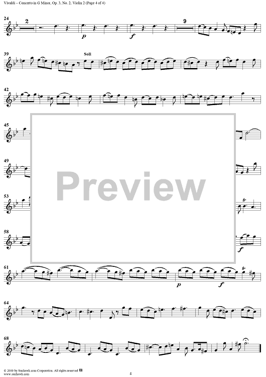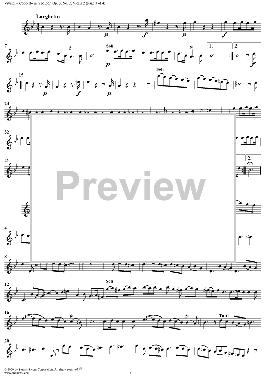 "Concerto in G Minor - from "L'Estro Armonico" - Op. 3/2 (RV578) - Violin 2" Sheet Music by Antonio Vivaldi