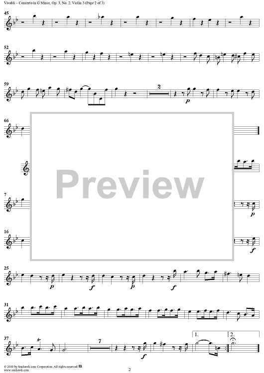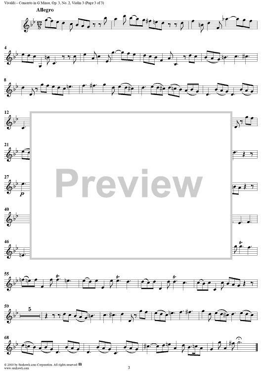 "Concerto in G Minor - from "L'Estro Armonico" - Op. 3/2 (RV578) - Violin 3" Sheet Music by Antonio Vivaldi