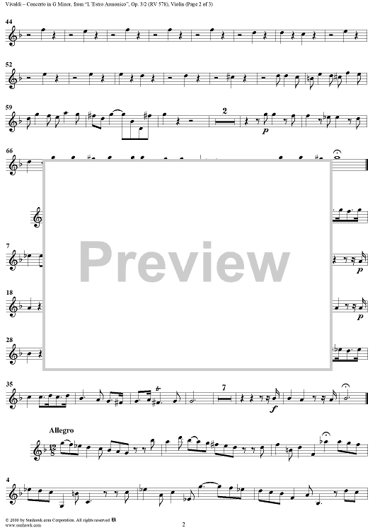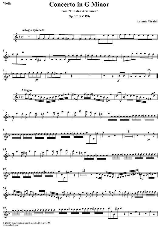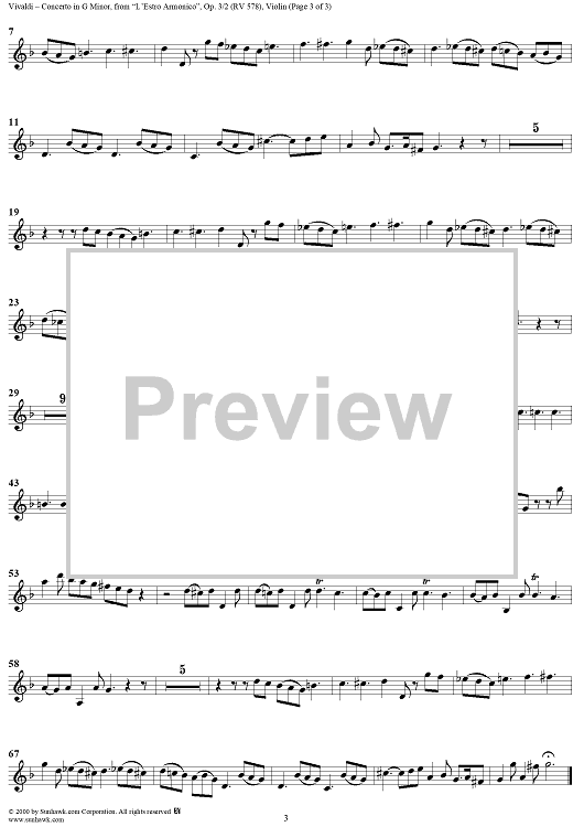 Digital Sheet Music for Concerto in G Minor - from "L'Estro Armonico" - Op. 3/2 (RV578) - Violin 4 by Antonio Vivaldi scored for String Orchestra; id:265077
