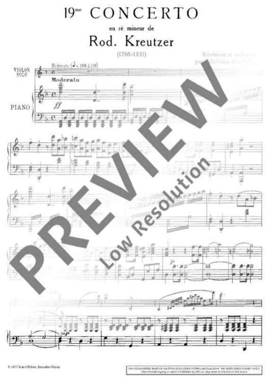 Digital Sheet Music for Concerto N°19 D minor - Piano Reduction by Rodolphe Kreutzer scored for Violin And Orchestra; id:477573
