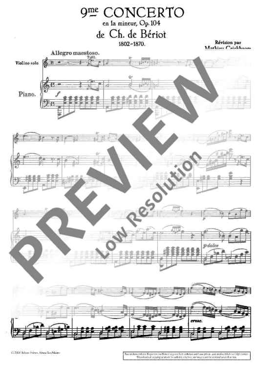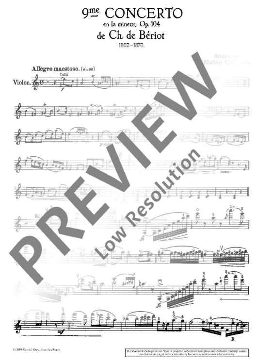Digital Sheet Music for Concerto n°9 A minor - Piano Reduction by Charles-Auguste de Bériot scored for Violin And Orchestra; id:477581