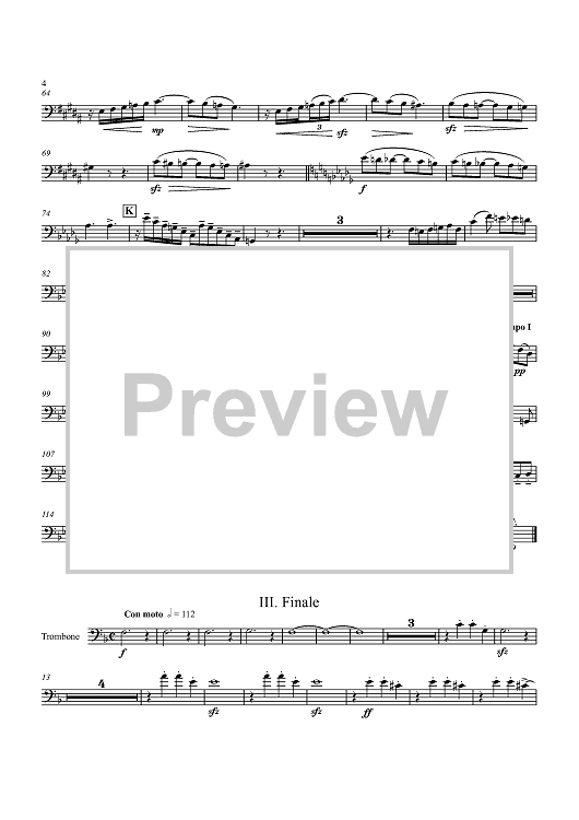 "Concerto No. 1 for Organ and Brass Quintet - Trombone" Sheet Music by Josef Rheinberger