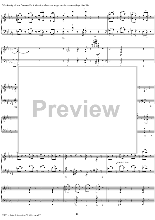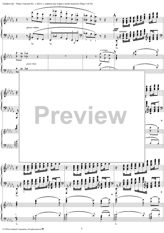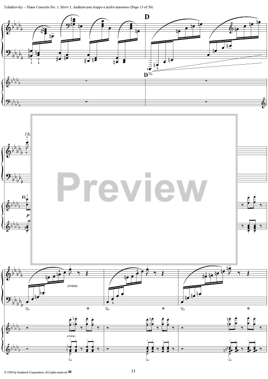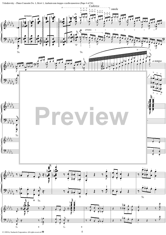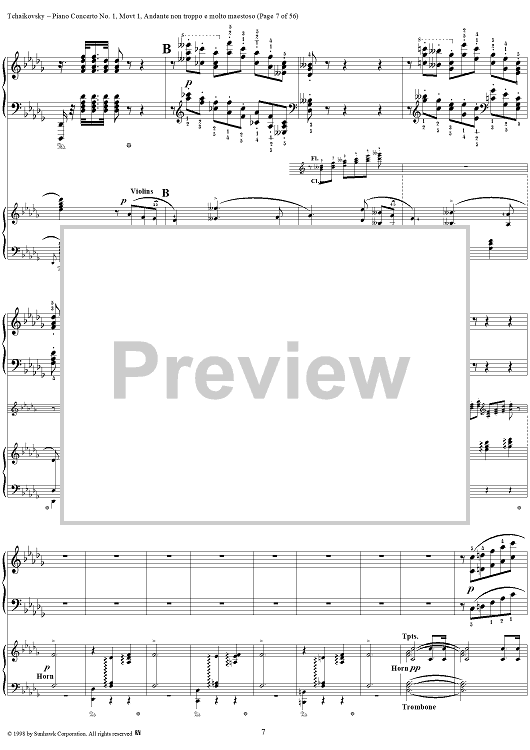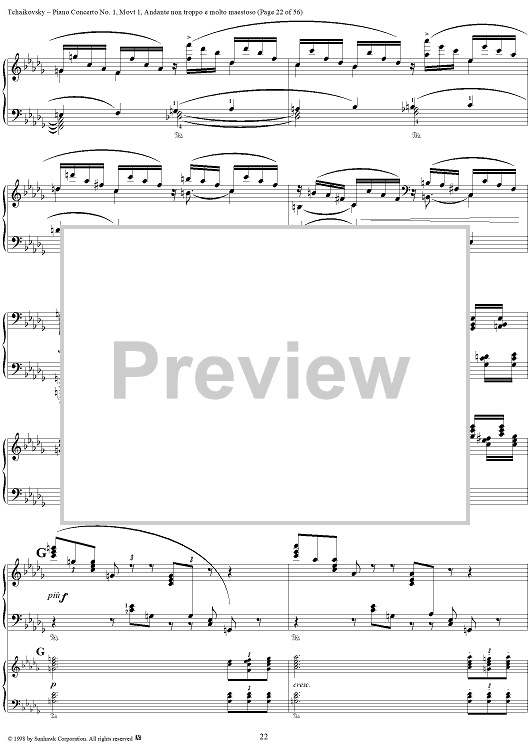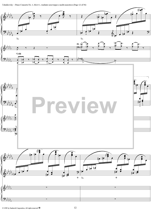 "Concerto No. 1 for Piano and Orchestra in B-flat minor (B-dur), Movement I" Sheet Music by Peter Ilyich Tchaikovsky