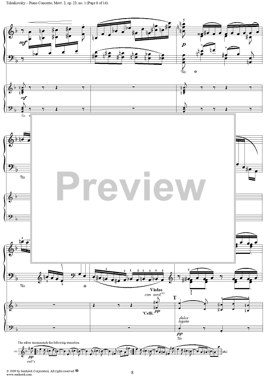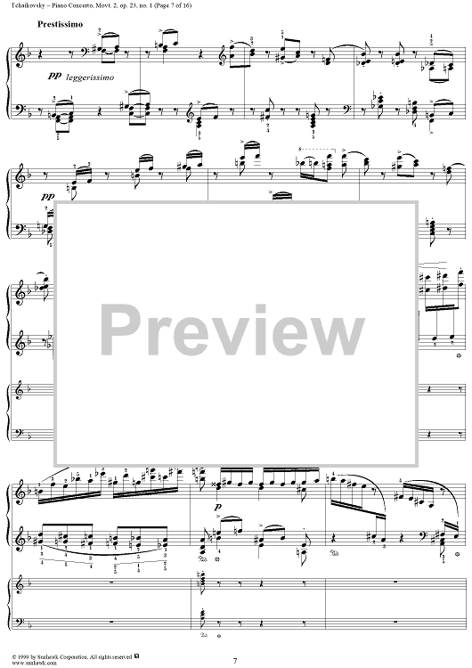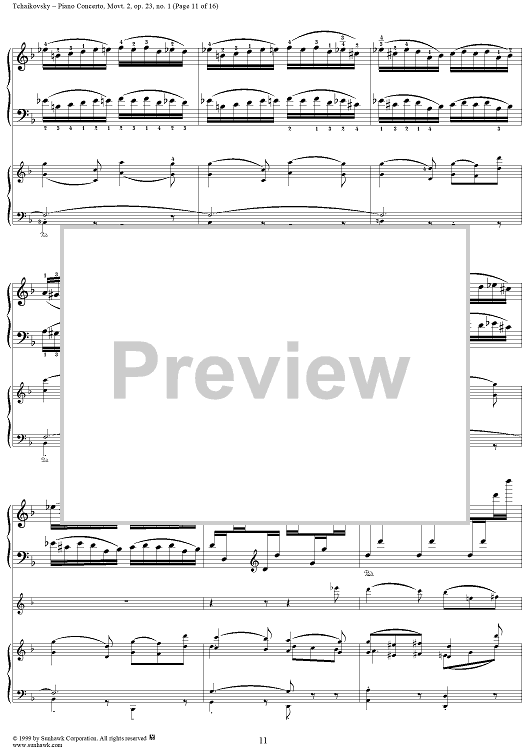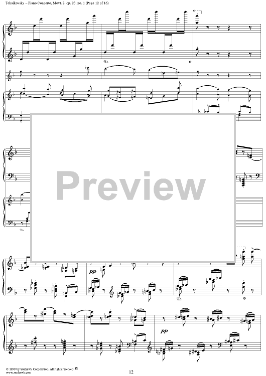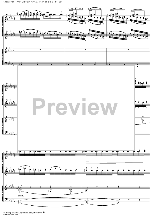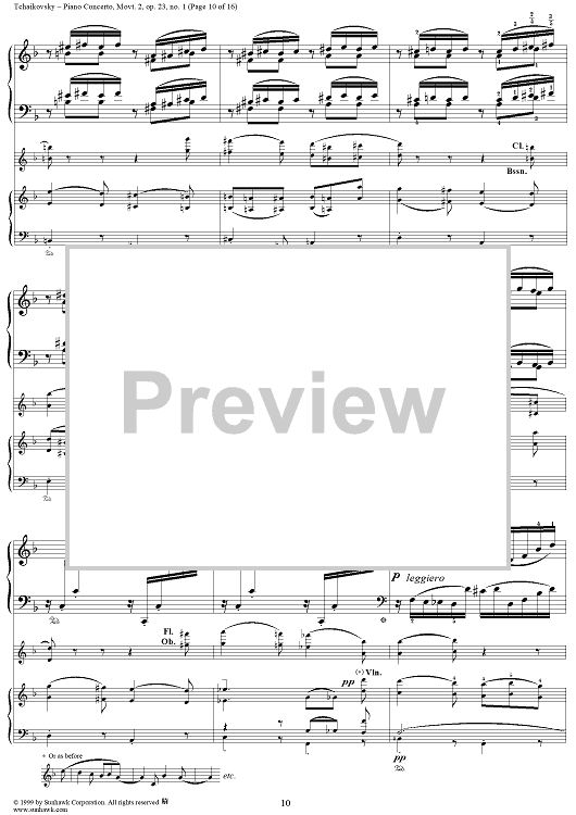 "Concerto No. 1 for Piano and Orchestra in B-flat minor (B-dur), Movement II" Sheet Music by Peter Ilyich Tchaikovsky