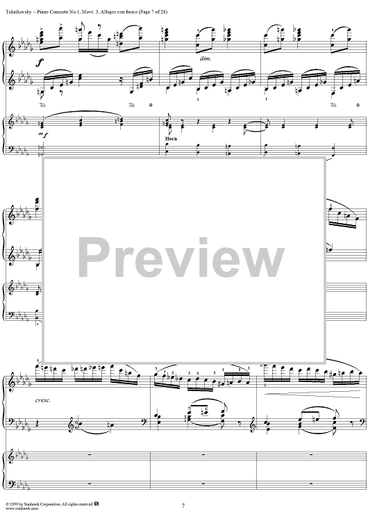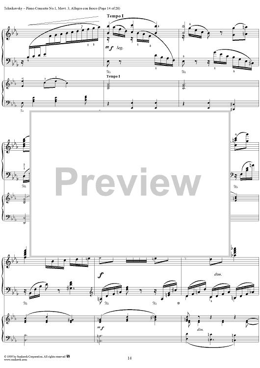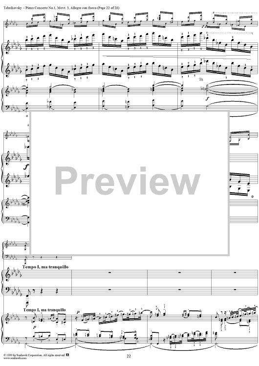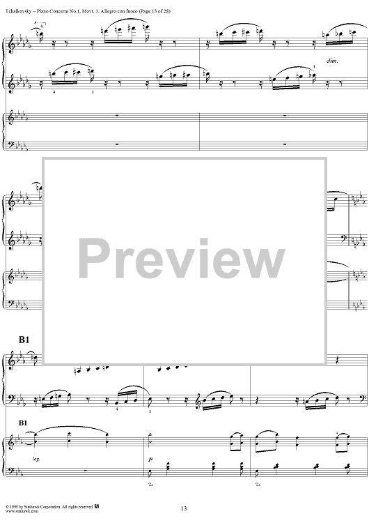 "Concerto No. 1 for Piano and Orchestra in B-flat minor (B-dur), Movement III" Sheet Music by Peter Ilyich Tchaikovsky