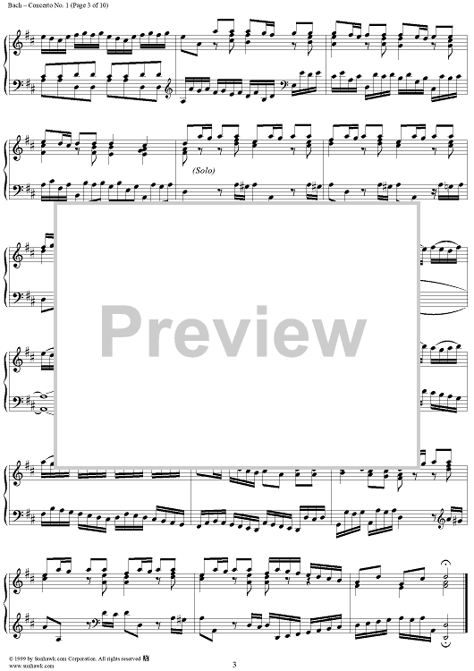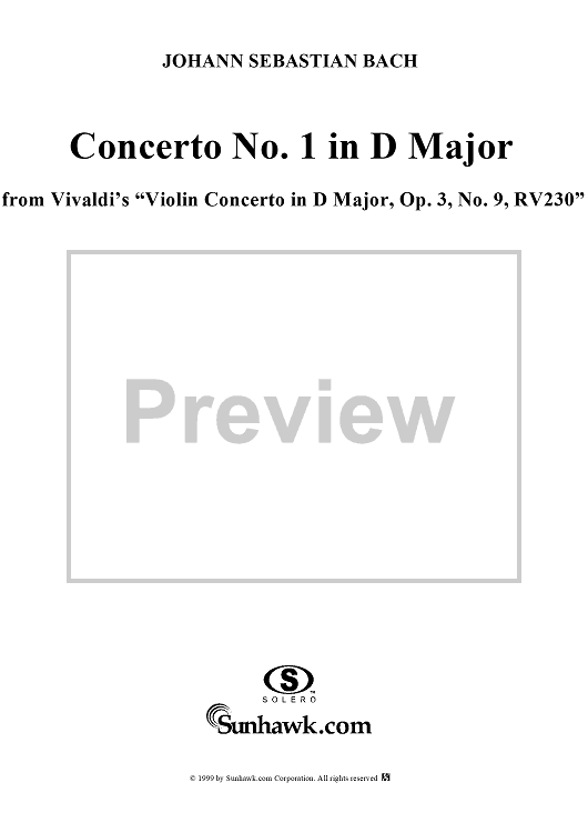 Digital Sheet Music for Concerto No. 1 in D major (from Vivaldi’s Op. 3/9, RV230) by Johann Sebastian Bach scored for Piano Solo; id:141136