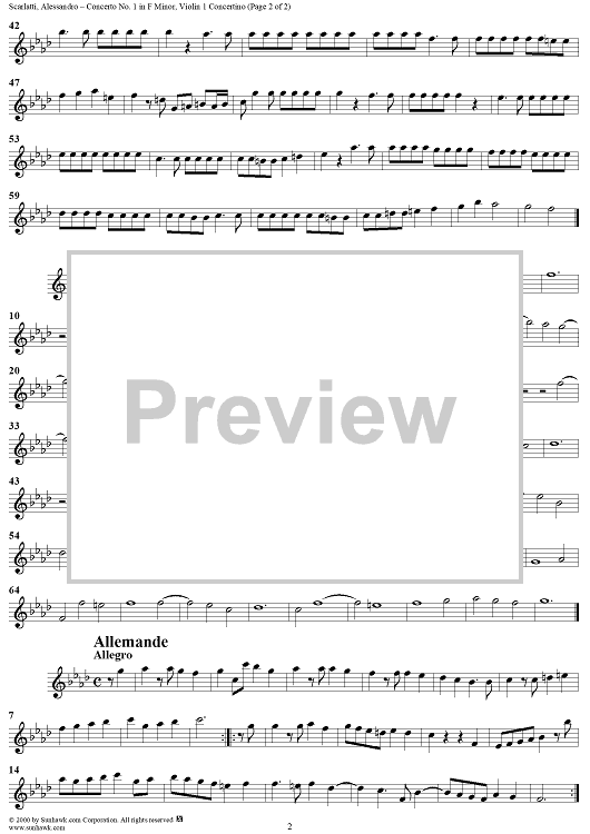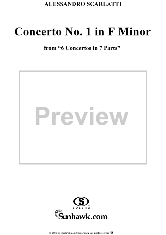 Digital Sheet Music for Concerto No. 1 in F Minor from "6 Concerti Grossi" - From "6 Concertos in 7 Parts" - Violin 1 Concertino by Alessandro Scarlatti scored for Strings/Continuo; id:257046