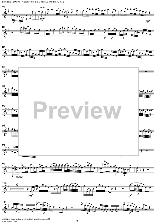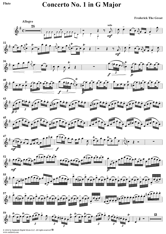 "Concerto No. 1 in G Major - Flute" Sheet Music by Frederick II, King of Prussia