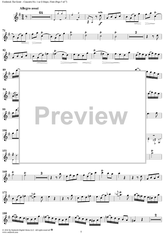 Digital Sheet Music for Concerto No. 1 in G Major - Flute by Frederick II, King of Prussia scored for Flute/Piano; id:303289