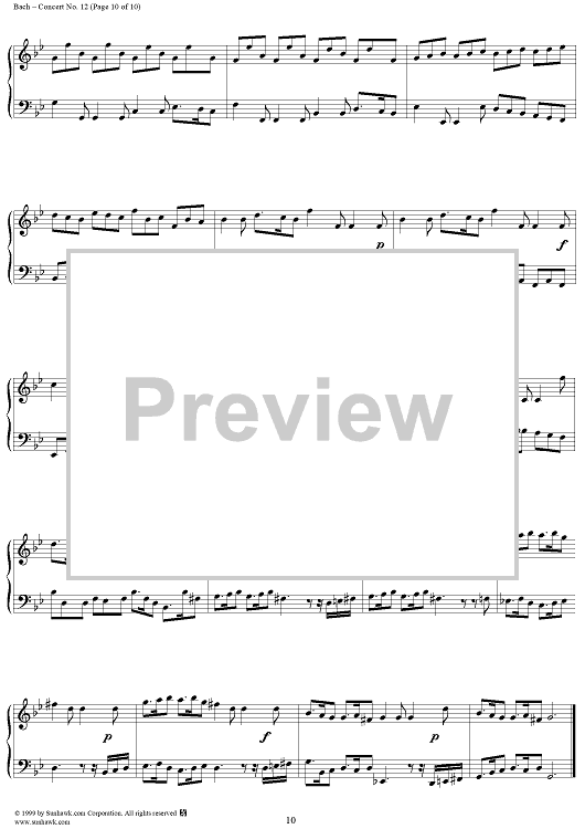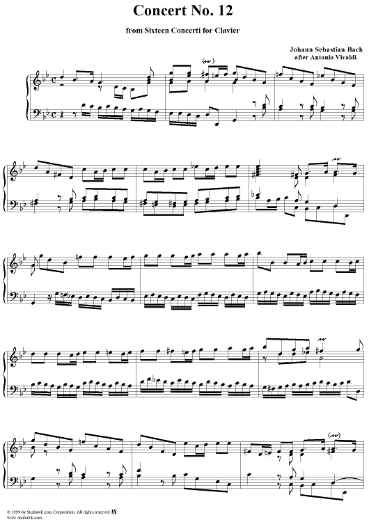 Digital Sheet Music for Concerto No. 12 in G minor (from anon) by Johann Sebastian Bach scored for Piano Solo; id:277026