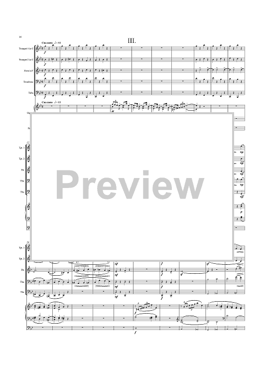 Digital Sheet Music for Concerto No. 2 for Organ and Brass Quintet - Score by Steven Gamble, Josef Rheinberger scored for Brass Quintet; id:410285