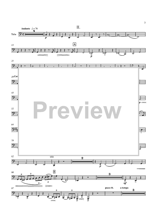 "Concerto No. 2 for Organ and Brass Quintet - Tuba" Sheet Music by Josef Rheinberger