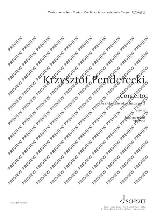 Digital Sheet Music for Concerto No. 2 - Full Score by Krzysztof Penderecki scored for Cello And Orchestra; id:510691