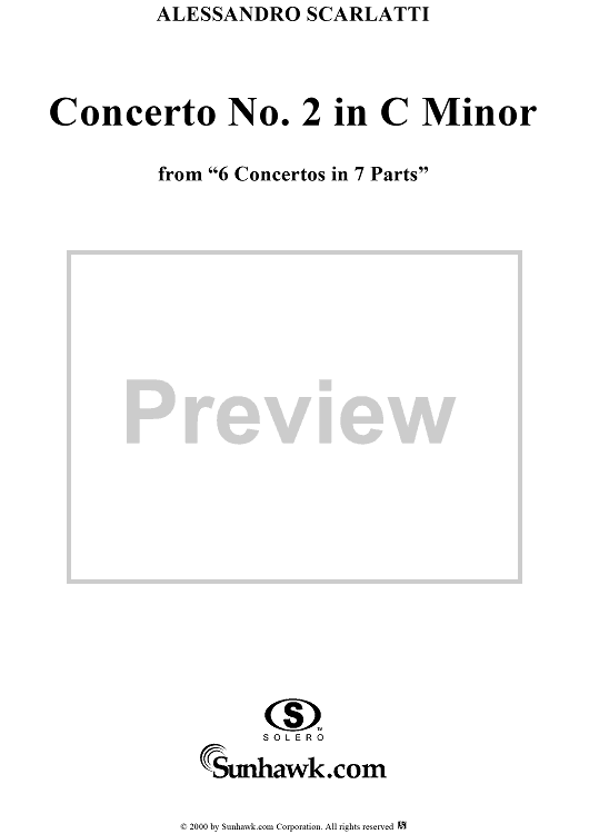 Digital Sheet Music for Concerto No. 2 in C Minor from "6 Concerti Grossi" - From "6 Concertos in 7 Parts" - Cello by Alessandro Scarlatti scored for Strings/Continuo; id:257070