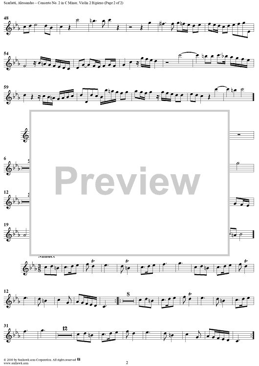 Digital Sheet Music for Concerto No. 2 in C Minor from "6 Concerti Grossi" - From "6 Concertos in 7 Parts" - Violin 2 by Alessandro Scarlatti scored for Strings/Continuo; id:257058