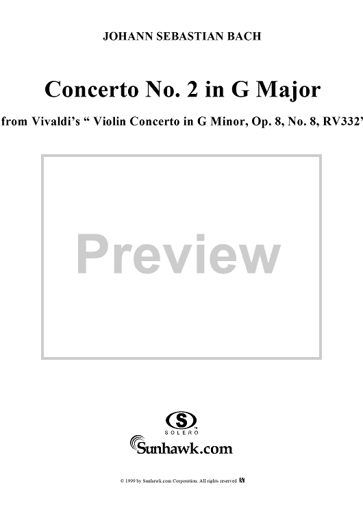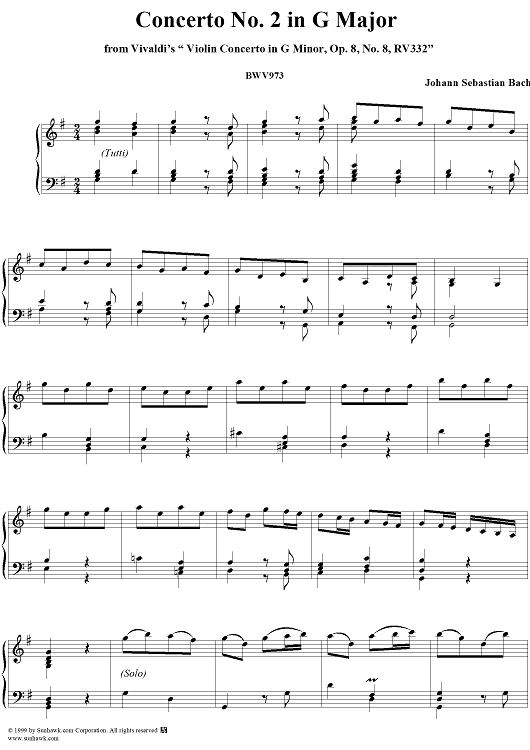 Digital Sheet Music for Concerto No. 2 in G major (from Vivaldi’s Op. 8/8, RV332) by Johann Sebastian Bach scored for Piano Solo; id:141137