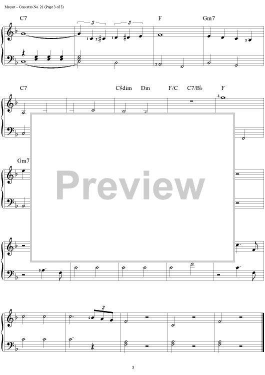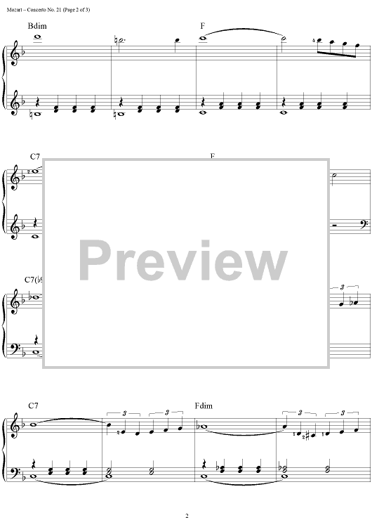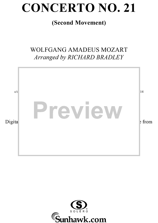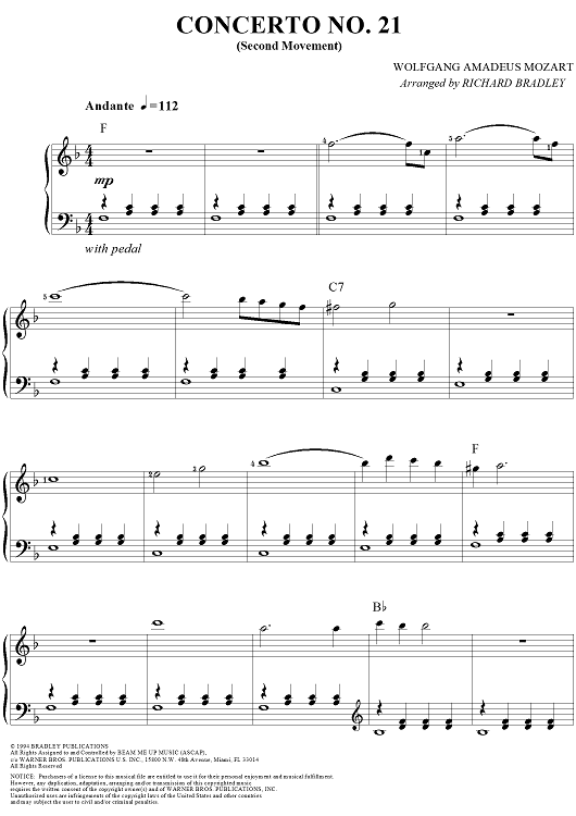 Digital Sheet Music for Concerto No. 21 (Second Movement) by Wolfgang Amadeus Mozart, Richard Bradley scored for Easy Piano; id:292908