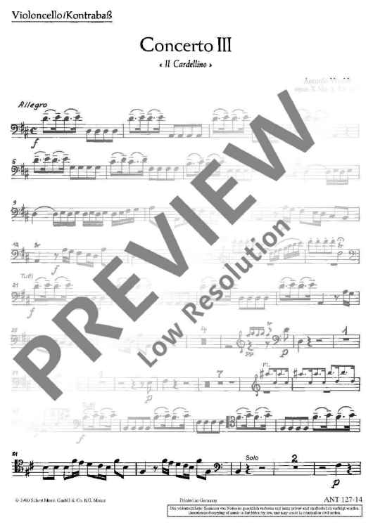 "Concerto No. 3 D major - Cello/double Bass" Sheet Music by Antonio Vivaldi