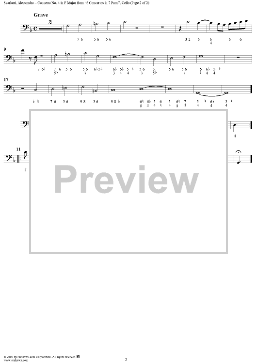 "Concerto No. 4 in G Major from "6 Concerti Grossi" - From "6 Concertos in 7 Parts" - Cello" Sheet Music by Alessandro Scarlatti