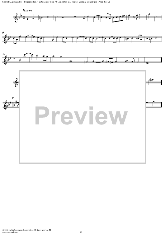 Digital Sheet Music for Concerto No. 4 in G Minor from "6 Concerti Grossi" - From "6 Concertos in 7 Parts" - Violin 2 Concertino by Alessandro Scarlatti scored for Strings/Continuo; id:256790