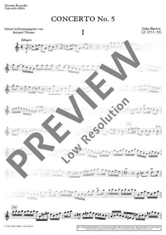 "Concerto No. 5 C major - Piano Score and Solo Part" Sheet Music by John Baston