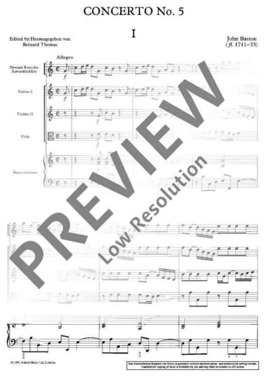 "Concerto No. 5 C major - Score" Sheet Music by John Baston
