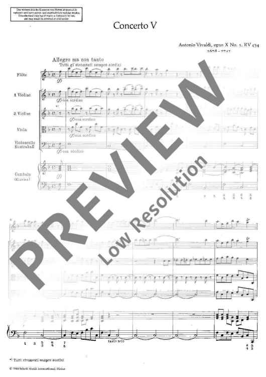 Digital Sheet Music for Concerto No. 5 - Score by Antonio Vivaldi scored for Flute (treble Recorder), String Orchestra And Basso Continuo; id:471155
